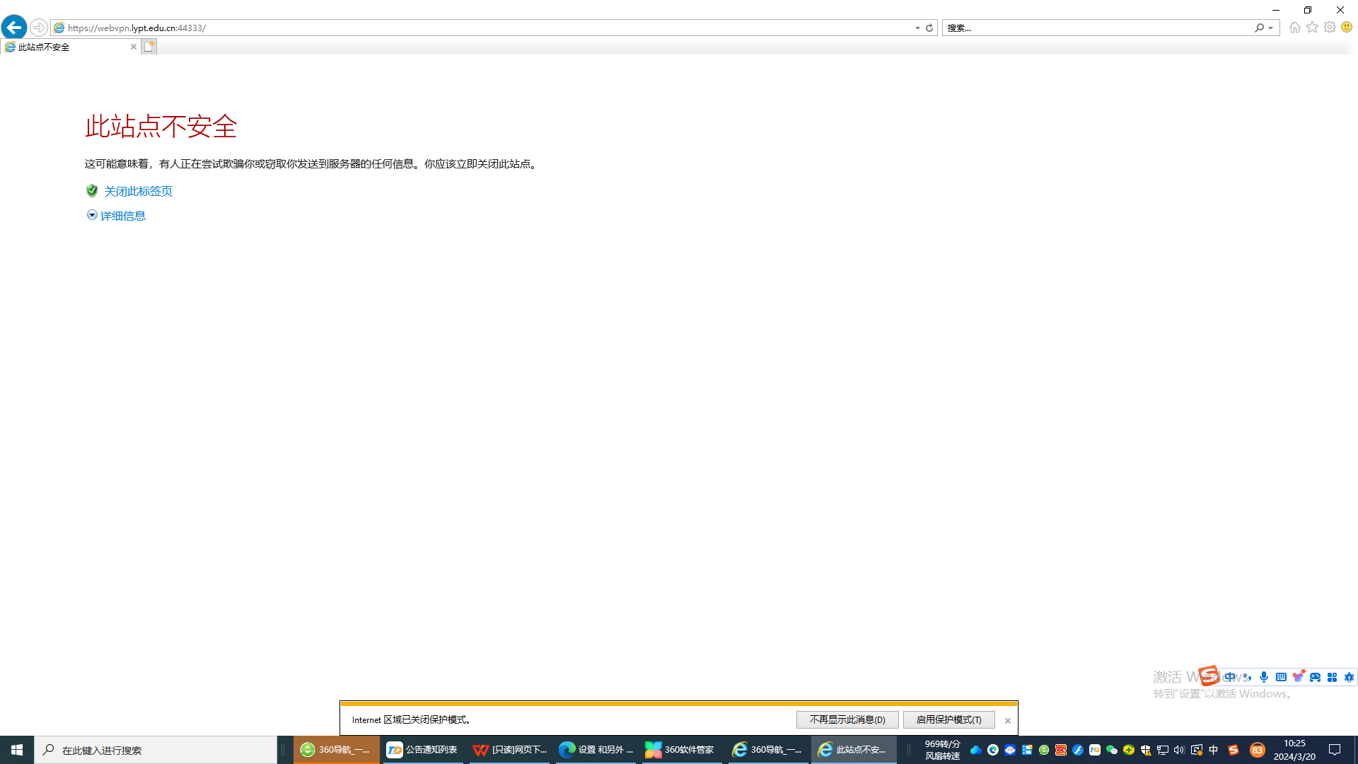 校外VPN使用过程中,电脑端浏览器打开https://webvpn.lypt.edu.cn:44333