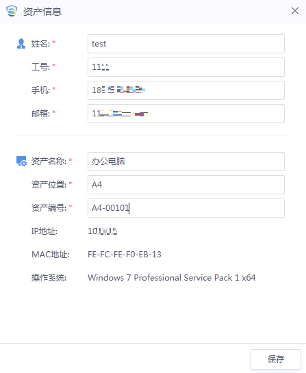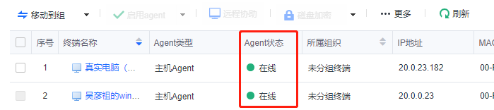 安装成功后,终端 Agent 自动连接aES管理端,在管理端[资产管理/资产分组]可以看到终端上线信息。即完成终端部署