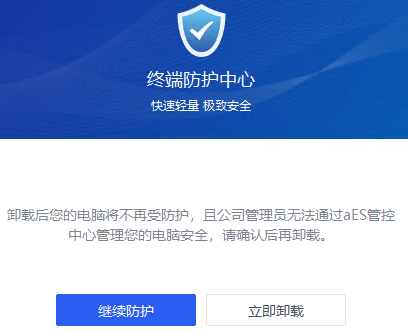 选择直接安装:aES安装完成后终端文件实时防护默认开启(实时防护依赖管理端策略,管理端默认开启文件实时防护)
